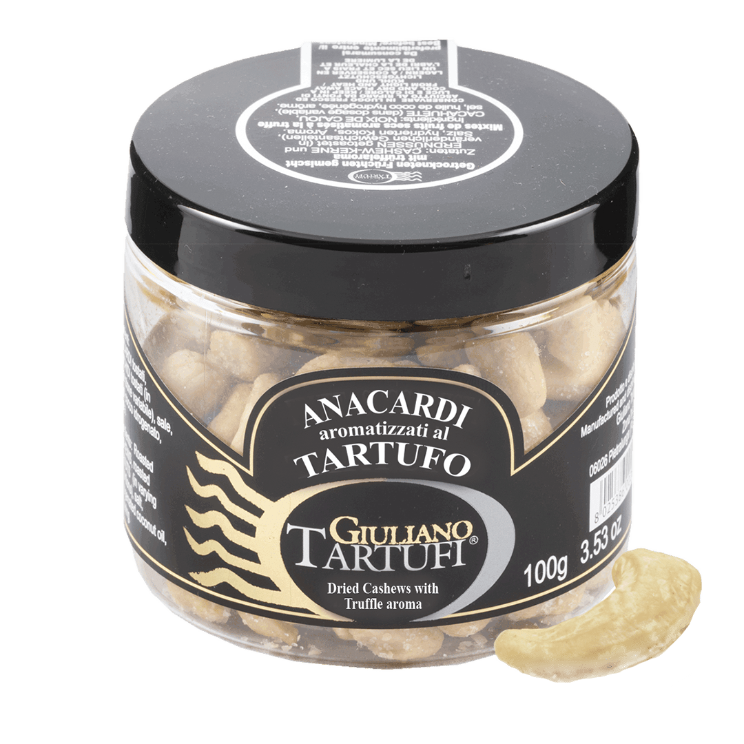 “Happy Truffle: Aperitif aus Cashewnüssen mit Trüffeln” ist ein herzhafter Gourmet-Snack für jeden Anlass.