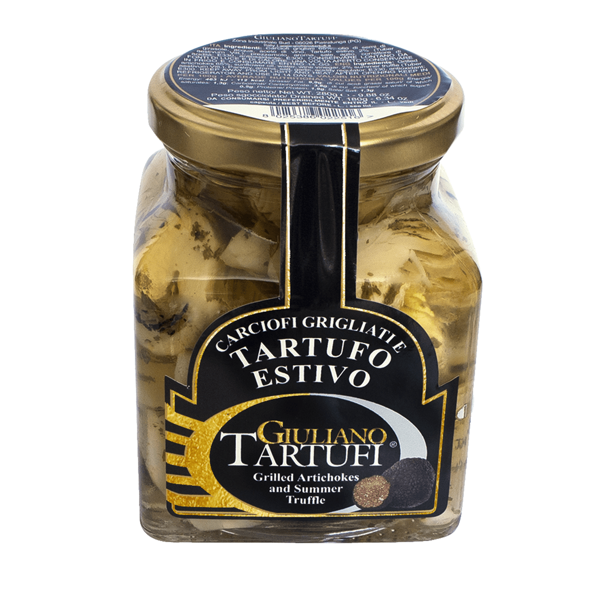 Einfaches und leckeres traditionelles Rezept, basierend auf sorgfältig ausgewählten und kalibrierten Artischocken, einige Stunden nach der Ernte gegrillt und in Sonnenblumenöl konserviert. Das Vorhandensein der Sommertrüffel garantiert einen zusätzlichen Touch.