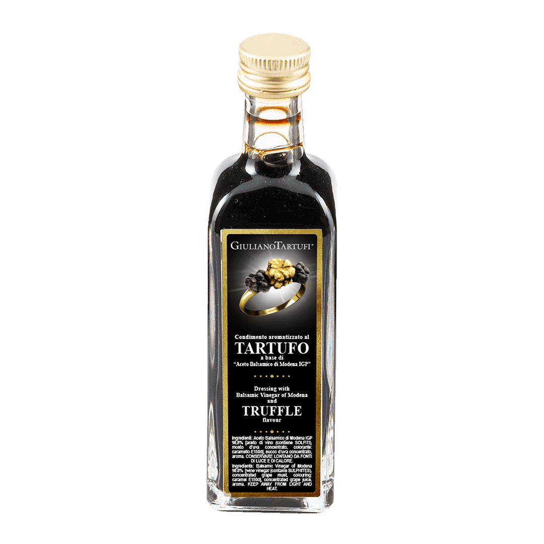 Discover the exquisite taste of Condiment with Balsamic Vinegar of Modena PGI and Truffle, a perfect fusion of tradition and luxury. This premium condiment combines the rich, bittersweet notes of Balsamic Vinegar of Modena PGI with the unmistakable aroma of truffle, creating an intense and sophisticated flavor.
