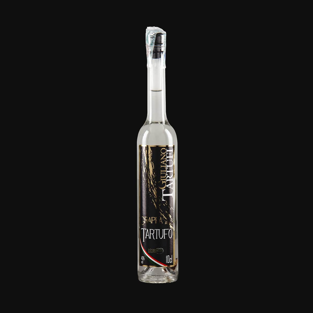 La grappa à la Truffe Giuliano Tartufi est le résultat de l’infusion de truffe -qui reste visible à l’intérieur de la bouteille- dans le distillat de marc de raisin italien sélectionné. Une grappa jeune avec une teneur de 40% alc./vol. vraiment unique et original, avec une couleur transparente et un arrière-goût délicat de truffe