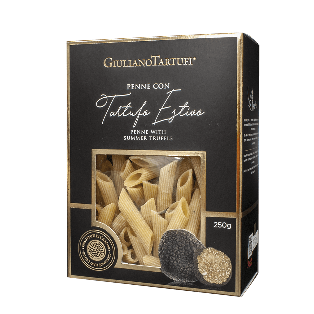 Les Penne avec Truffe d’été sont le résultat de la combinaison entre la meilleure semoule de blé dur, œufs et truffe d’été. La consistance parfaite rend chaque bouchée enveloppante et savoureuse. Les Penne à la truffe d’été sont parfaites pour leur simplicité: après la cuisson c’est suffisant ajouter une noix de beurre et pour déguster toute leur bonté.