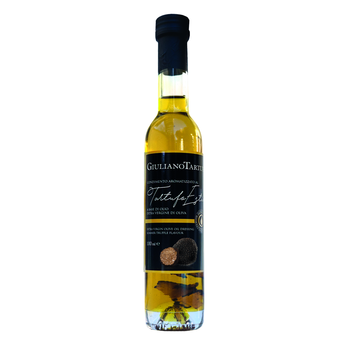 Il condimento aromatizzato al tartufo nero pregiato è molto semplice da utilizzare e può essere abbinato a molti piatti per esaltare il sapore di tartufo. Versione caratterizzata da una bottiglia dalla forma prestigiosa ed elegante, e dalla presenza di una rilevante quantità di tartufo puro, sia in scaglie che a pezzetti, sul fondo.