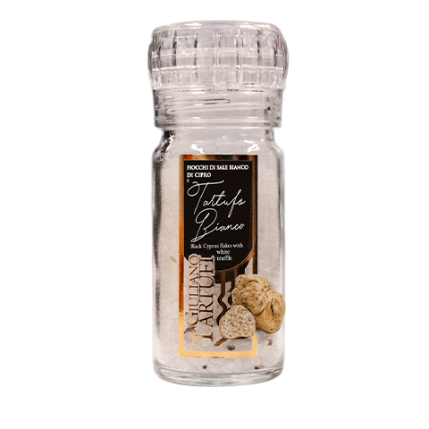 I fiocchi di sale bianco di Cipro e Tartufo bianco sono un condimento molto semplice da utilizzare per esaltare il sapore di Tartufo in qualsiasi piatto che richiede la salatura, come sostituto del sale classico.